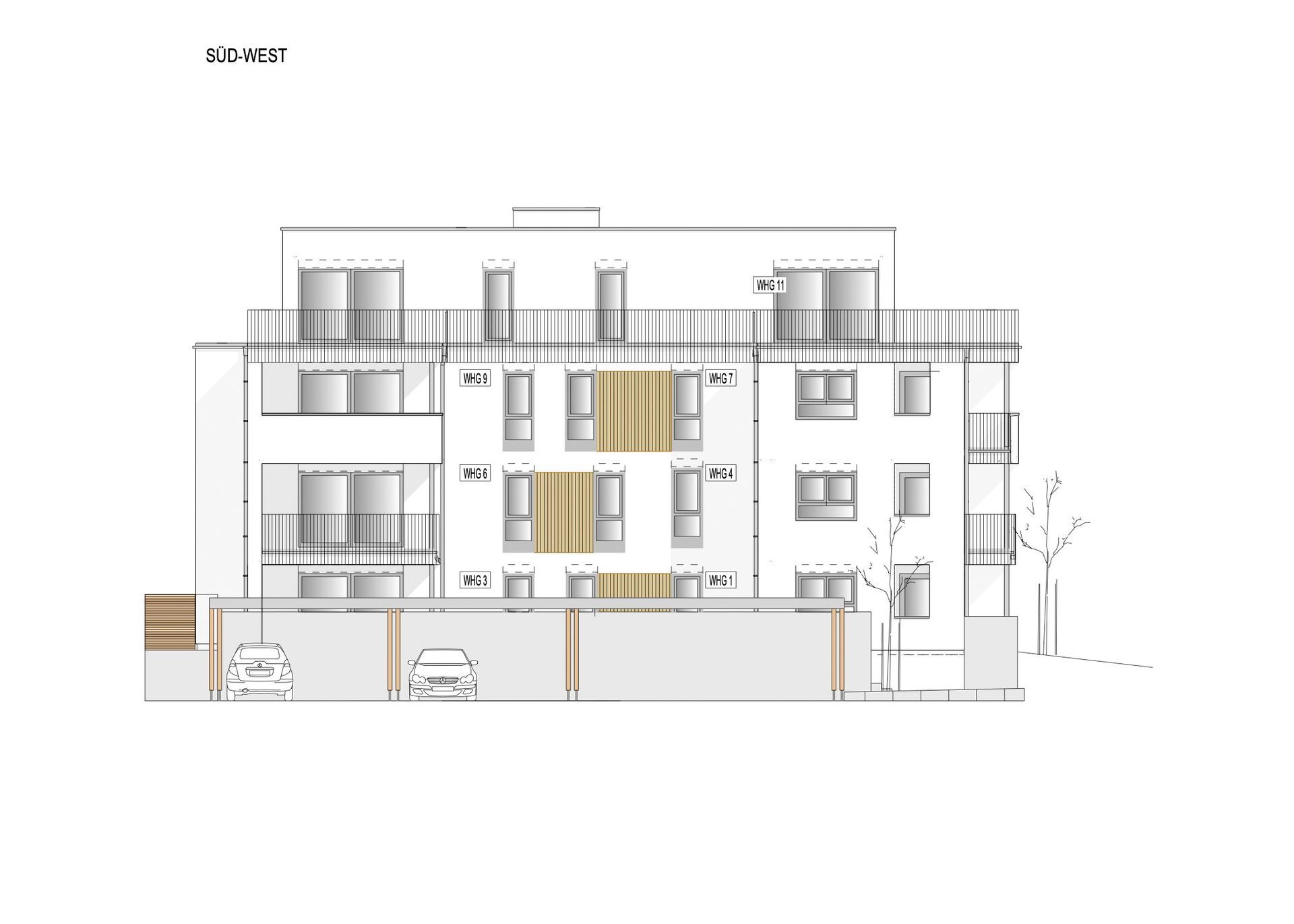 Dieses Neubauvorhaben besteht aus einem Mehrfamilienhaus mit insgesamt 11 Wohnungen. Die Größen der 2 bis 4 1⁄2- Zimmer-Wohnungen reichen von ca. 77 m² bis ca. 126 m².